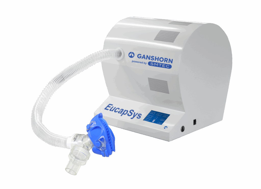 Le patient hyperventile, un mélange de gaz secs contenant 5% de CO₂ à température ambiante, pendant environ six minutes à l’aide d’un masque respiratoire. Cette procédure est entièrement enregistrée par le boîtier du système EucapSys.